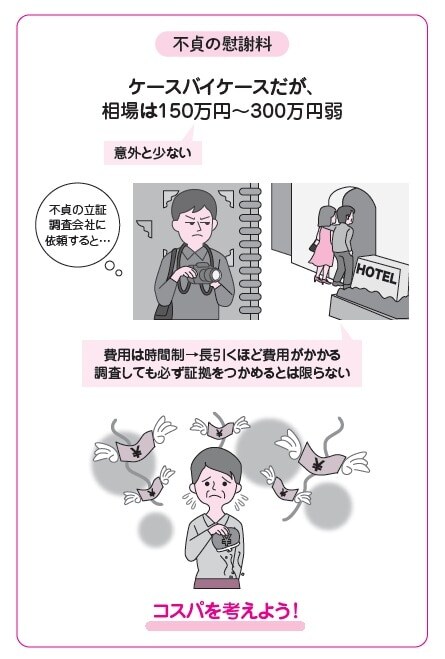 相手の不貞による離婚。慰謝料の金額はケースバイケースですが、相場は意外と少ないのが現実です。また、相手の不貞であっても、慰謝料の請求には証拠が不可欠。しかし証拠を掴むために多額の報酬が必要になるケースも。本記事では、『熟年離婚 女性がお金で損をしない本』(河出書房新社)の著者、寺門美和子氏が、慰謝料の相場や証拠の重要性を解説します。